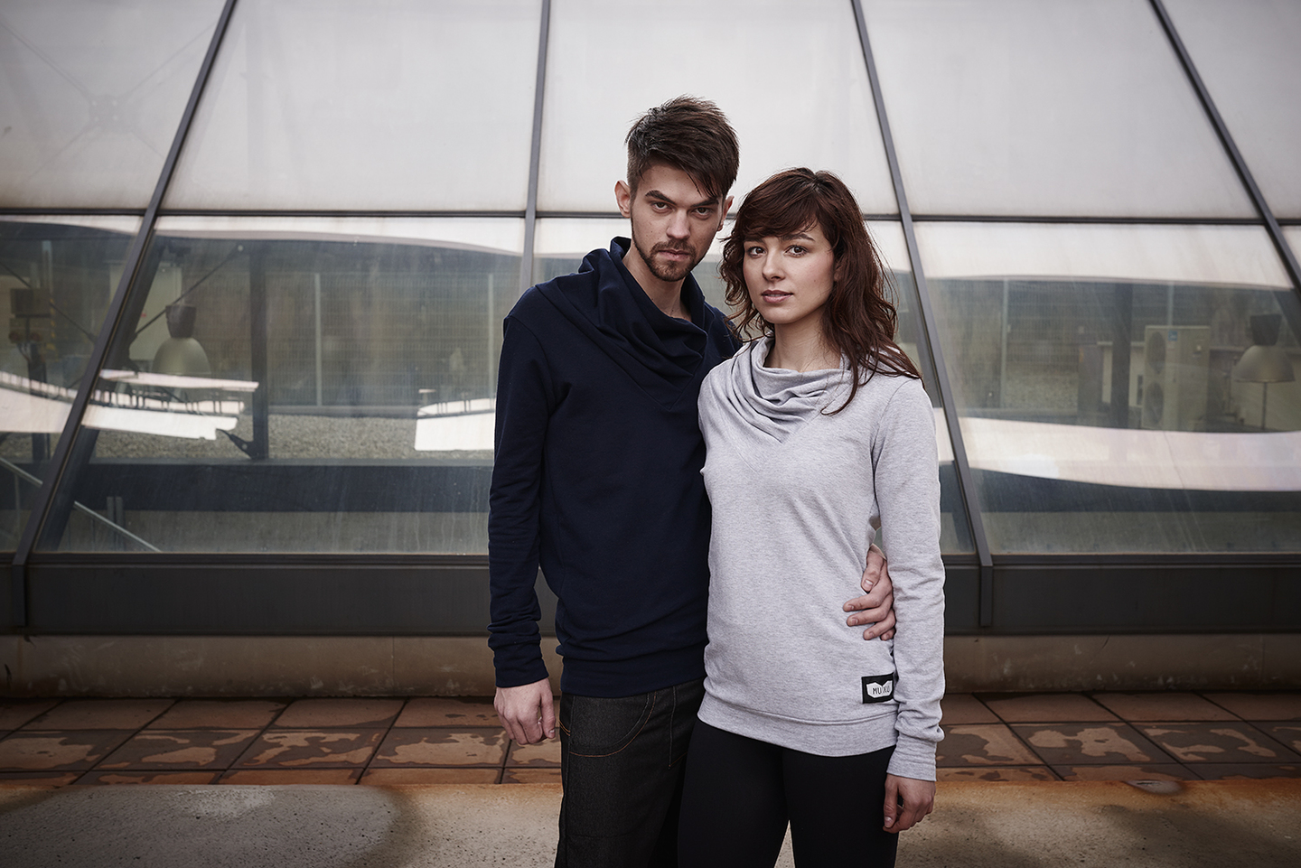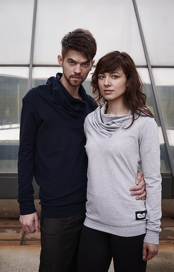 Unisex mikina s asymetrickým skládaným límcem. Šedý melír.